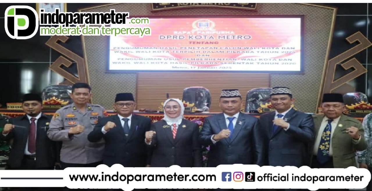 INDOPARAMETER – METRO – Harapan baru menyelimuti Kota Metro usai Dewan Perwakilan Rakyat Daerah (DPRD) Kota setempat melaksanakan rapat paripurna pengumuman hasil penetapan Wali Kota dan Wakil Wali Kota terpilih dalam Pilkada serentak 2024. Rapat tersebut menetapkan pasangan H. Bambang Iman Santoso dan Dr. M. Rafieq Adi Pradana sebagai Wali Kota dan Wakil Wali Kota Metro terpilih periode 2025-2030. (19/1/2025)