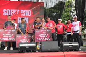 INDOPARAMETER – BANDARLAMPUNG, Pj. Gubernur Lampung, Samsudin, bersama Gubernur Lampung terpilih, Rahmat Mirzani Djausal, turut memeriahkan kegiatan Soekarno Fun Run di Lapangan Saburai Enggal, Bandarlampung, Minggu (26/1/2025). Acara ini digelar dalam rangka memperingati Hari Ulang Tahun ke-52 PDI Perjuangan, dengan dihadiri Wakil Sekretaris Jenderal (Wasekjen) DPP PDI Perjuangan, Utut Adianto.