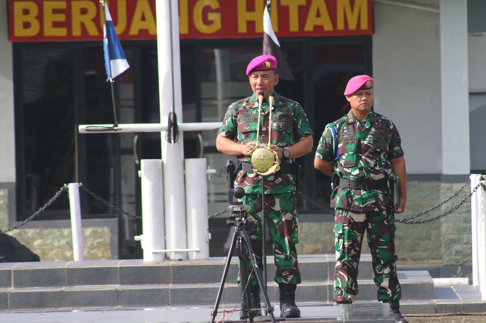 Komandan Brigade Infanteri (Danbrigif) 4 Mar/BS, Kolonel Mar Supriadi Tarigan, S.I.P., M. M., beserta prajurit Brigif 4 Mar/BS mengikuti Apel khusus lewat vicon yang dipimpin langsung oleh Dankormar Mayjen TNI (Mar) Dr. Endi Supardi, S.E., M.M., M.Tr.Opsla., CHRMP., CRMP., yang dilaksanakan di Lapangan Apel Yonif 9 Mar, Batumenyan, Teluk Pandan, Pesawaran Lampung. Kamis (20/03/2025).